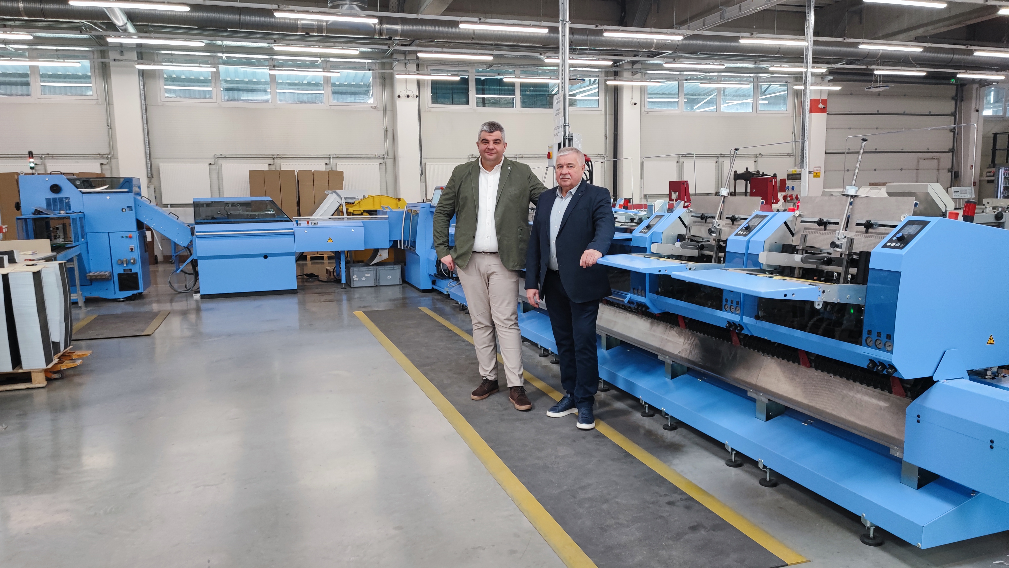 Für Máté Pető (links) und Mr. Balázs Pető hat sich die erwartete Produktivitätssteigerung mit dem Primera PRO Sammelhefter von Müller Martini in der Praxis in vollem Umfang bestätigt.