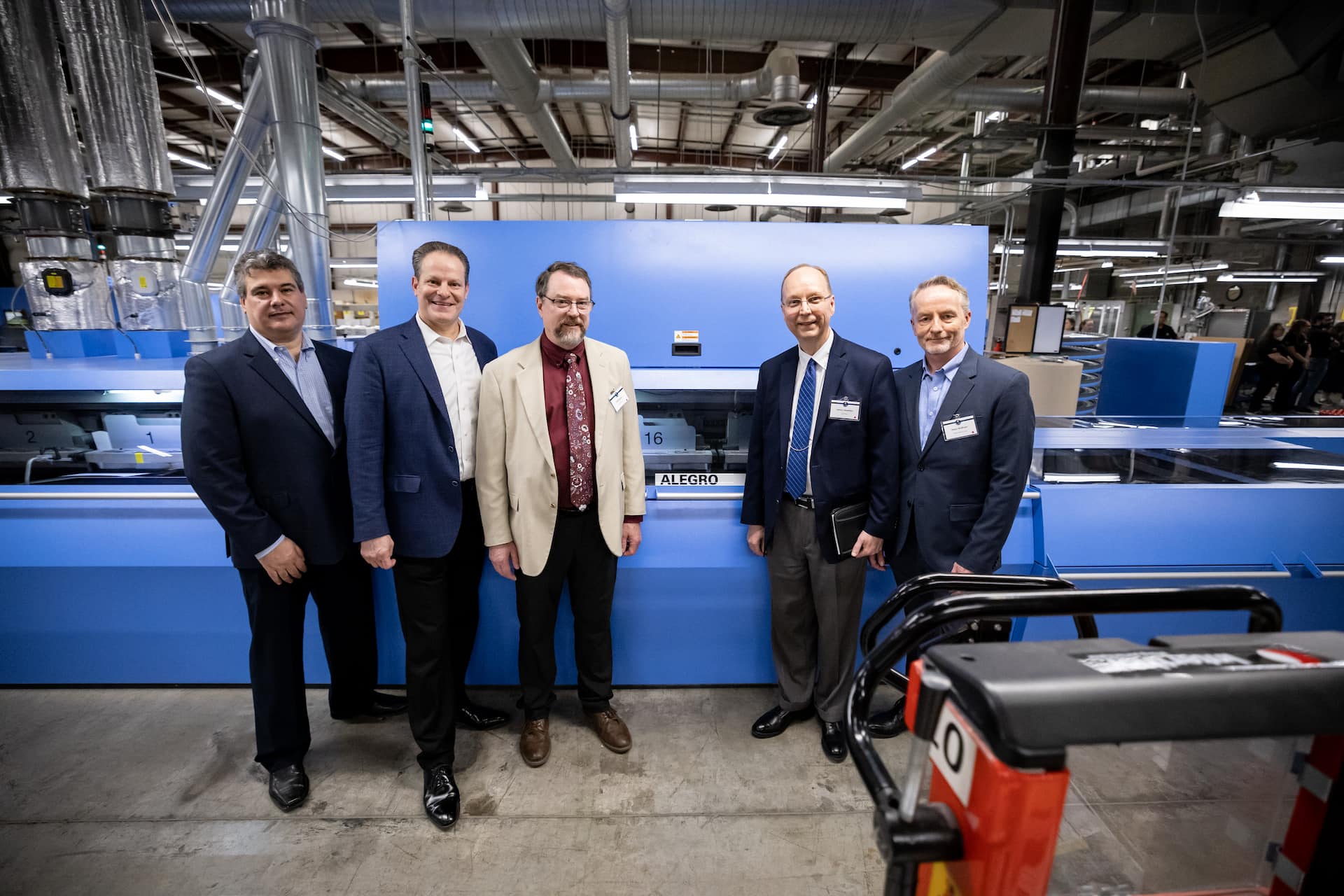 Von links: Carlos Martins (Head of Solutions Manager Muller Martini North America), Andy Fetherman (President and CEO Muller Martini North America), Bill Robson (Senior Manager Printing Operations BJU Press), James Llewellyn (Director of Manufacturing and Distribution BJU Press), Peter Wolfram (Regional Sales Manager Muller Martini North America).