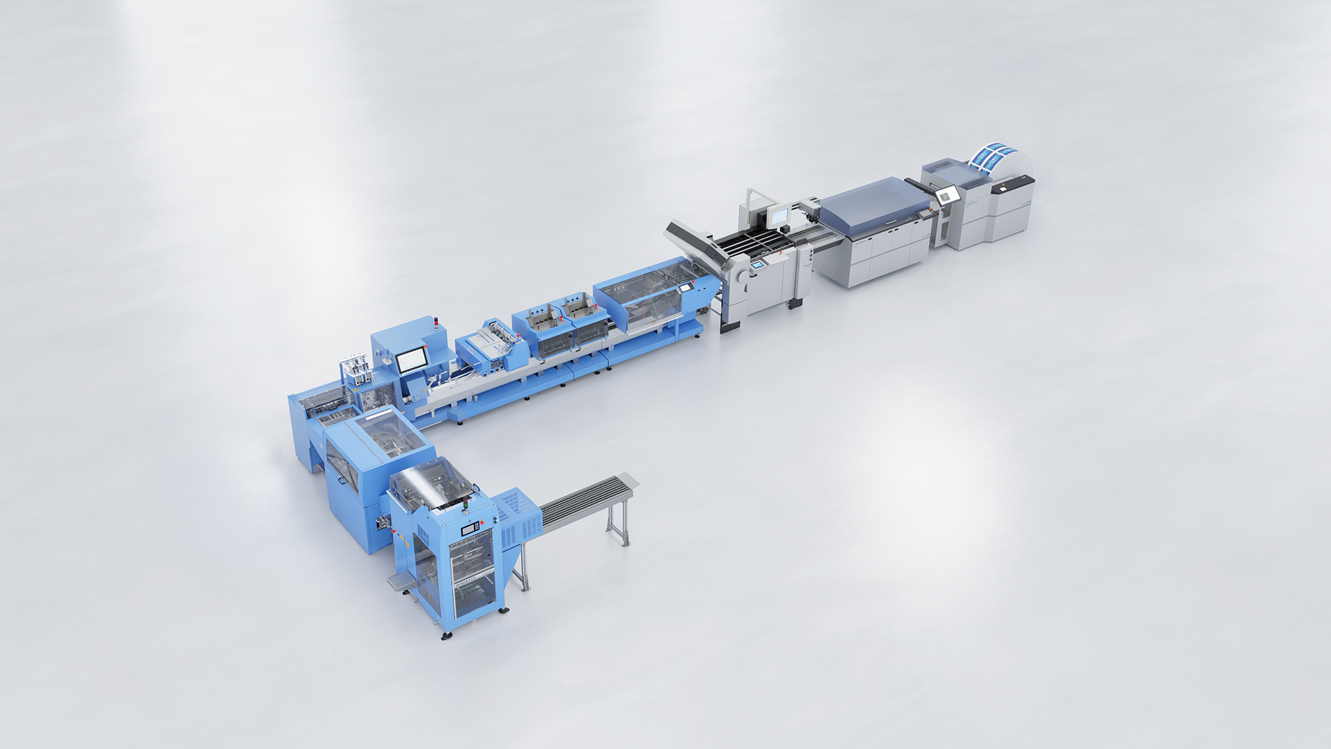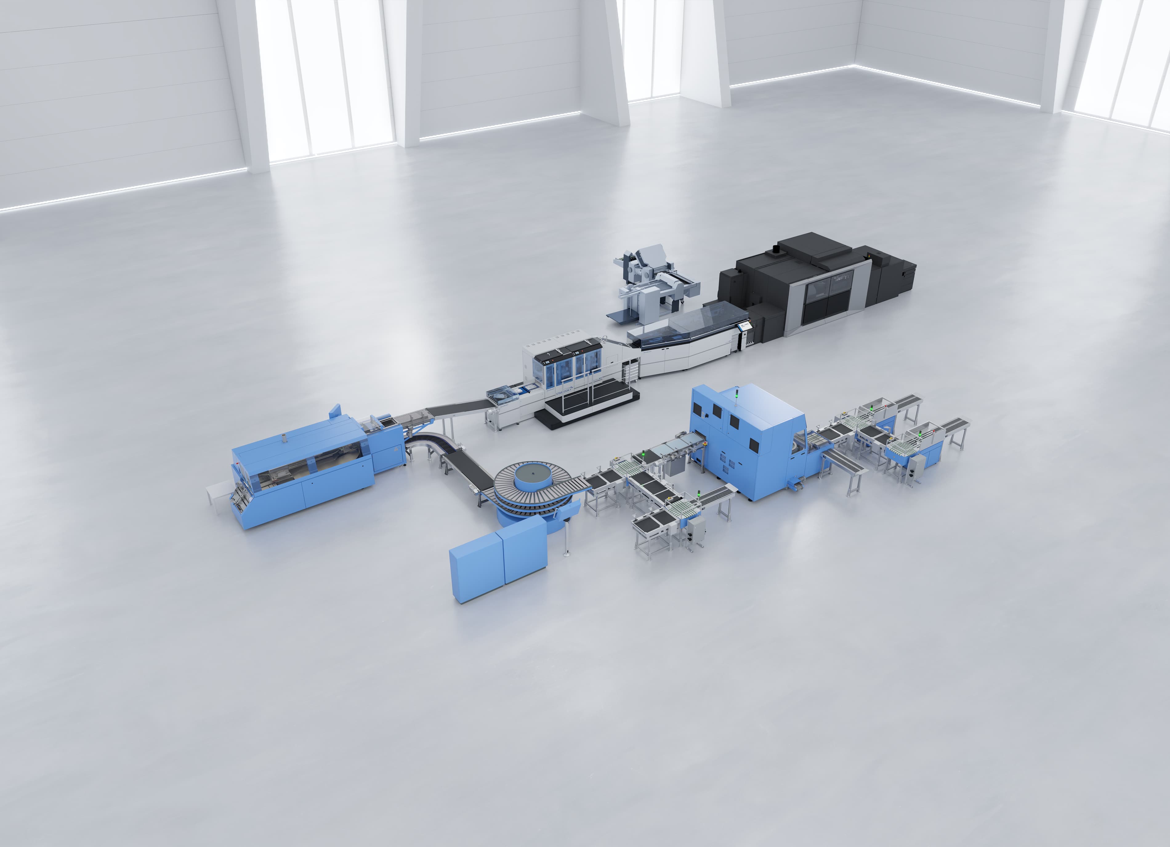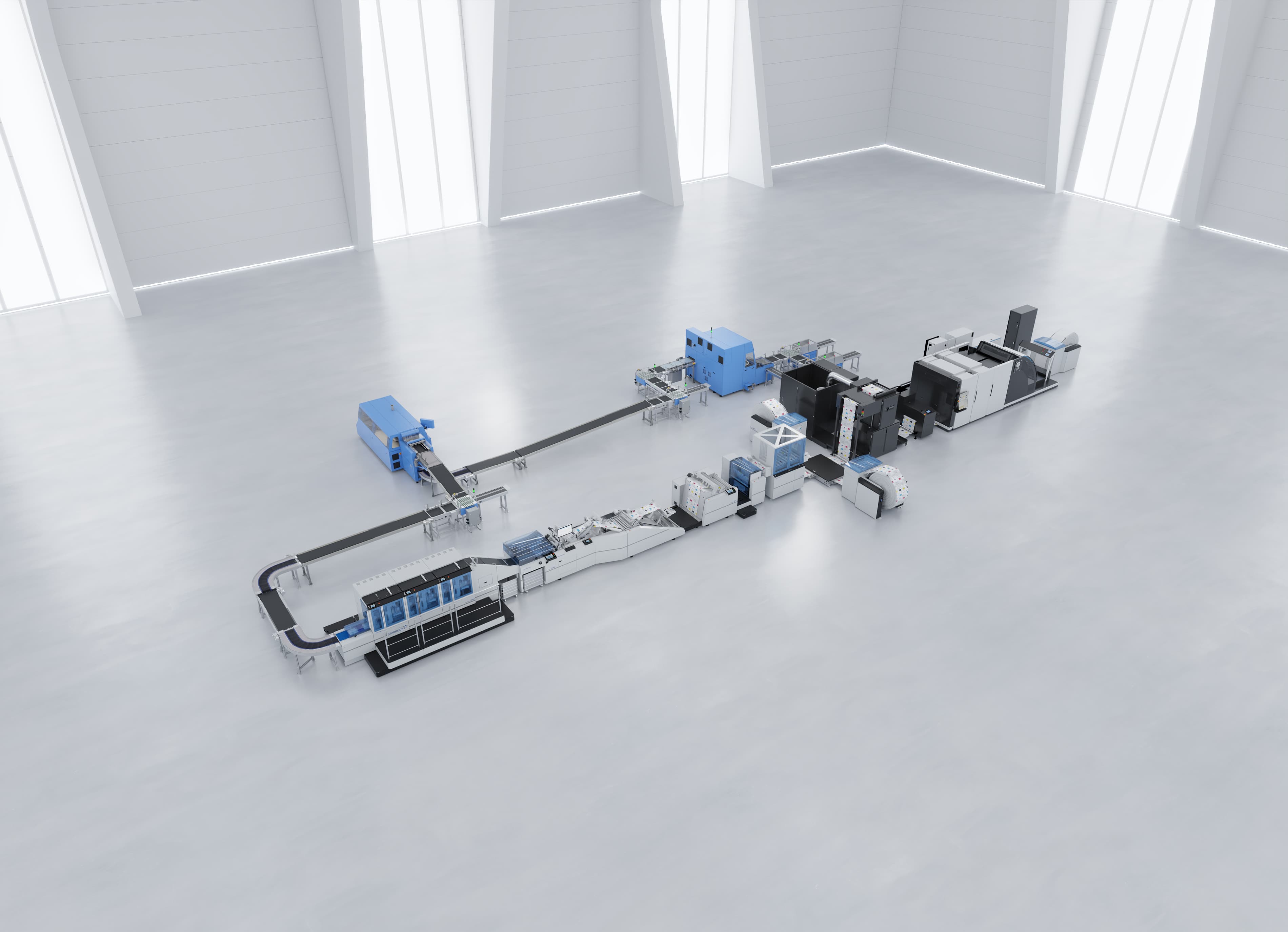 The newly developed Antaro Digital can be used as a nearline or inline system, thereby covering a broad range of customer requirements. Thanks to its compact design, it realises a unique output rate over a comparatively small area. In addition, compared to current single-book production solutions, the Antaro Digital achieves the same output with fewer than half the operators.