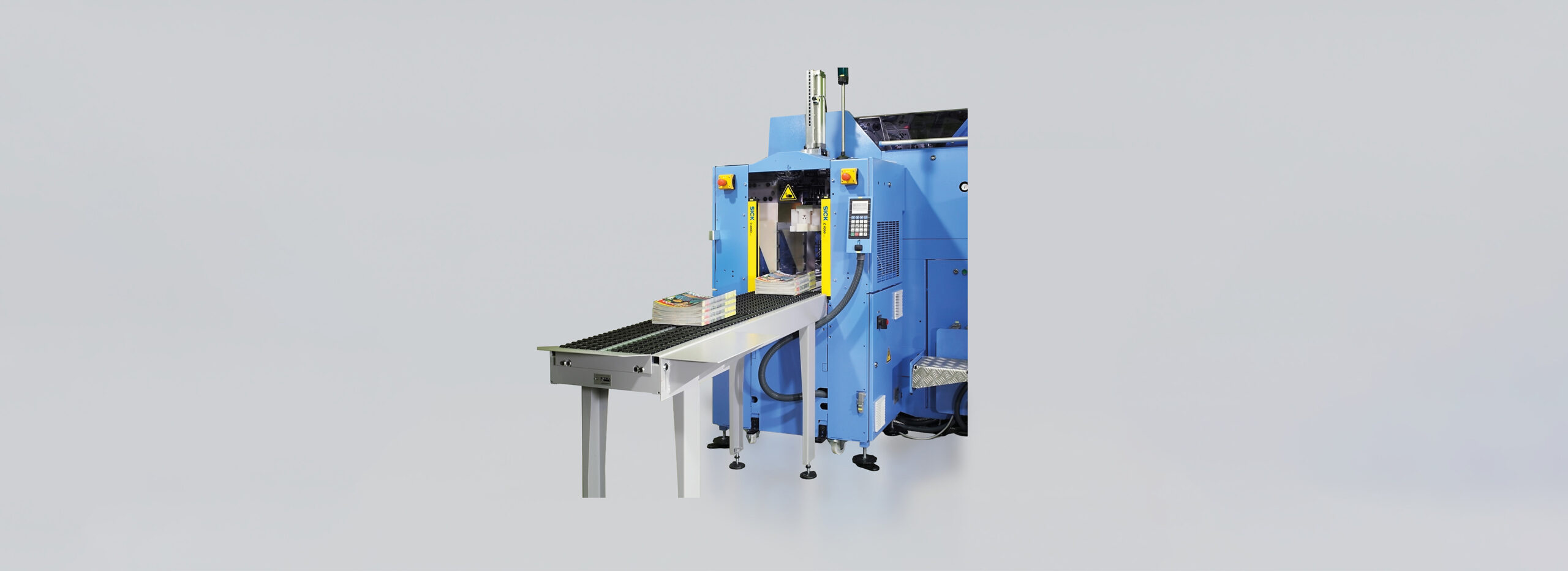 Für den sicheren Weitertransport fixiert die Paketverblockung 0457 Produktstapel durch kontrollierte Aufladung und Pressung elektrostatisch. Dadurch kann häufig auf den Einsatz einer Umreifungsmaschine verzichtet werden, womit die Kosten für Umreifungsmaterial entfallen. Die Paketverblockung 0457 ist für ein breites Formatspektrum ausgelegt und kann auch Produkte im Doppel- oder Dreifachnutzen verarbeiten.