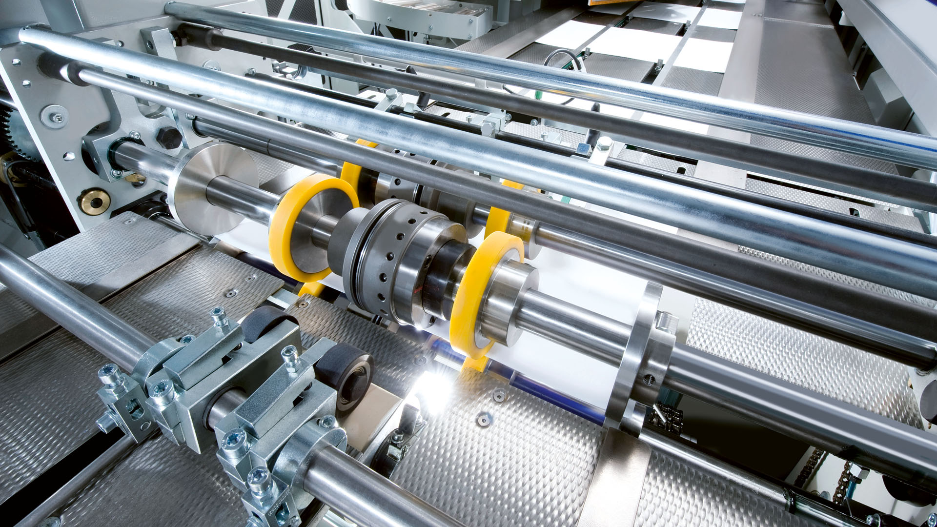 Die kurzen Rüstzeiten sorgen dafür, dass Sie auch bei häufigen Formatwechseln effizient produzieren können. Die Andrückschienen für die verschiedenen Betriebsarten lassen sich über eine pneumatische Regelung per Tastendruck austauschen.